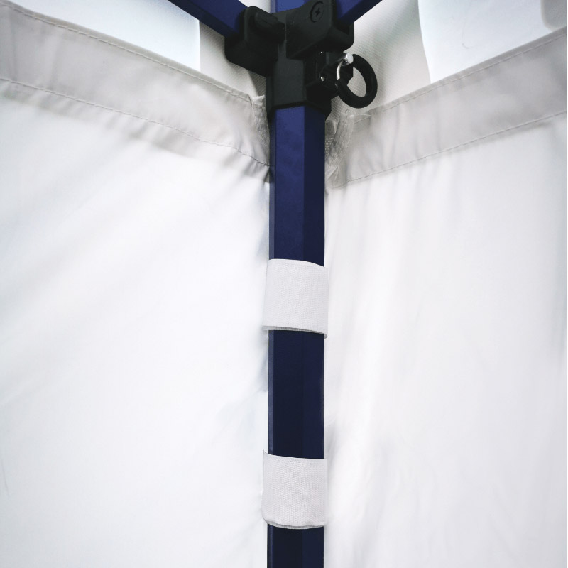 Pakkaus sisältää 3 sivuseinää, joiden avulla suljettu myyntitila voidaan luoda nopeasti ja jättää yksi sivu avoimeksi asiakkaille (esim. tiskin kohdalle). Seinät suojaavat tehokkaasti tavaraa tuulelta, auringolta ja sateelta.