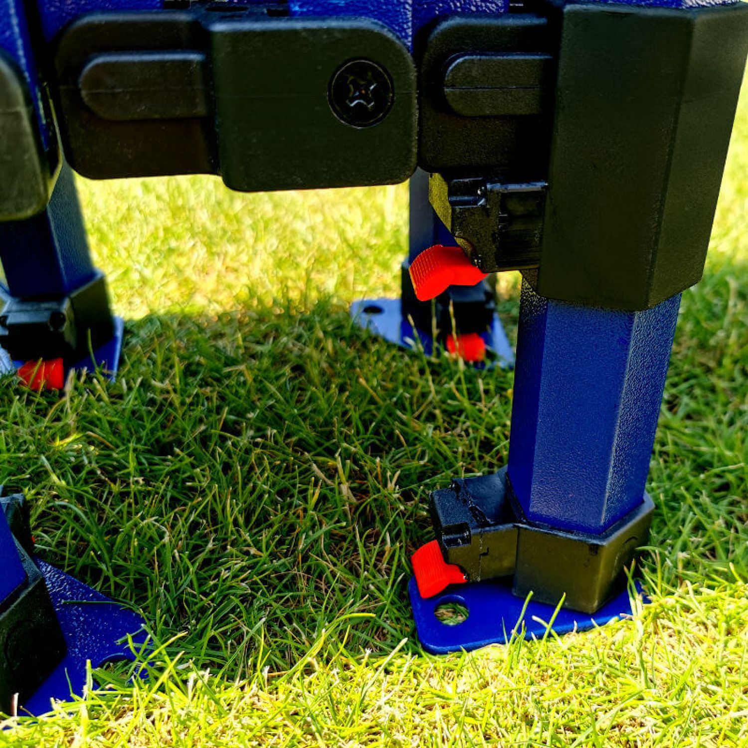 - Turvallinen lukitus: Mekanismin yksinkertainen lukitseminen käytännöllisillä napinapeilla ja teräspiikeillä varmistaa rungon nopean ja turvallisen lukituksen.
